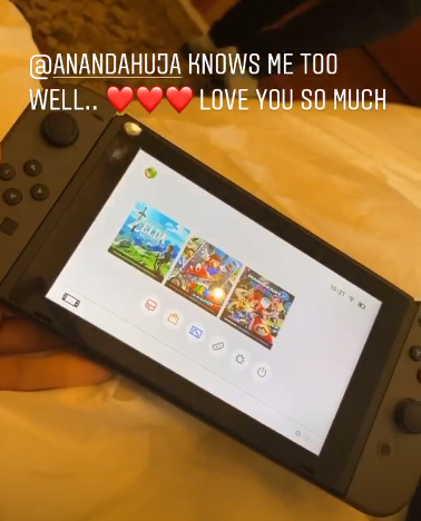 बीते दिन सोनम कपूर ने अपने इंस्टाग्राम अकाउंट से एक वीडियो शेयर करते हुए बताया कि आनंद ने उन्हें तोहफे में एक नाइनटेंडो का वीडियोगेम दिया है। ये गिफ्ट पाकर सोनम काफी एक्साइटेड नजर आ रही थीं। साथ ही उन्होंने लिखा कि आनंद उन्हें बहुत अच्छे से जानते हैं।