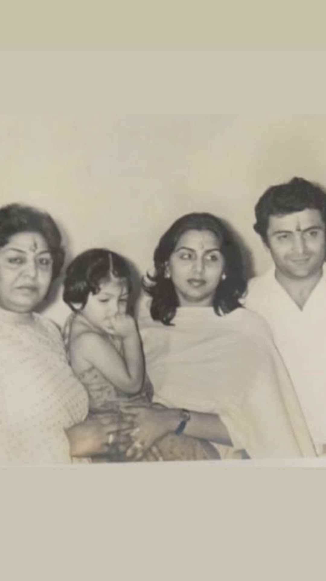 रिद्धिमा ने अपने इंस्टाग्राम से 4 पुरानी अनदेखी तस्वीरें शेयर की हैं। इन ब्लैक एंड व्हाइट तस्वीरों में ऋषि कपूर, नीतू, रणबीर के साथ रिद्धिमा का बचपन देखने मिल रहा है। पहली तस्वीर में वो अपने मम्मी पापा के बीच में बैठे पोज कर रही हैं वहीं भाई रणबीर कपूर पिता की गोद में बैठे हैं। शेयर की गई एक तस्वीर में नीतू कपूर की मां राजी सिंह भी नजर आ रही हैं।